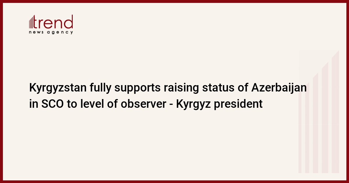 BAKU, Azerbaijan, April 20. Kyrgyzstan fully supports raising the status of Azerbaijan in the Shanghai Cooperation Organization (SCO) to the level of an observer, President of the Kyrgyz Republic Sadyr Japarov said at a meeting with President of the Republic of Azerbaijan Ilham Aliyev in an expanded format on April 20, Trend reports.