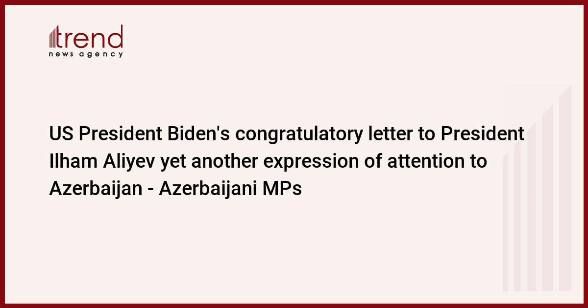 BAKU, Azerbaijan, May 21. US President Joe Biden's congratulatory letter to President of Azerbaijan Ilham Aliyev on the occasion of the Independence Day is yet another expression of attention to our country and head of state, MP Elshan Musayev told Trend.