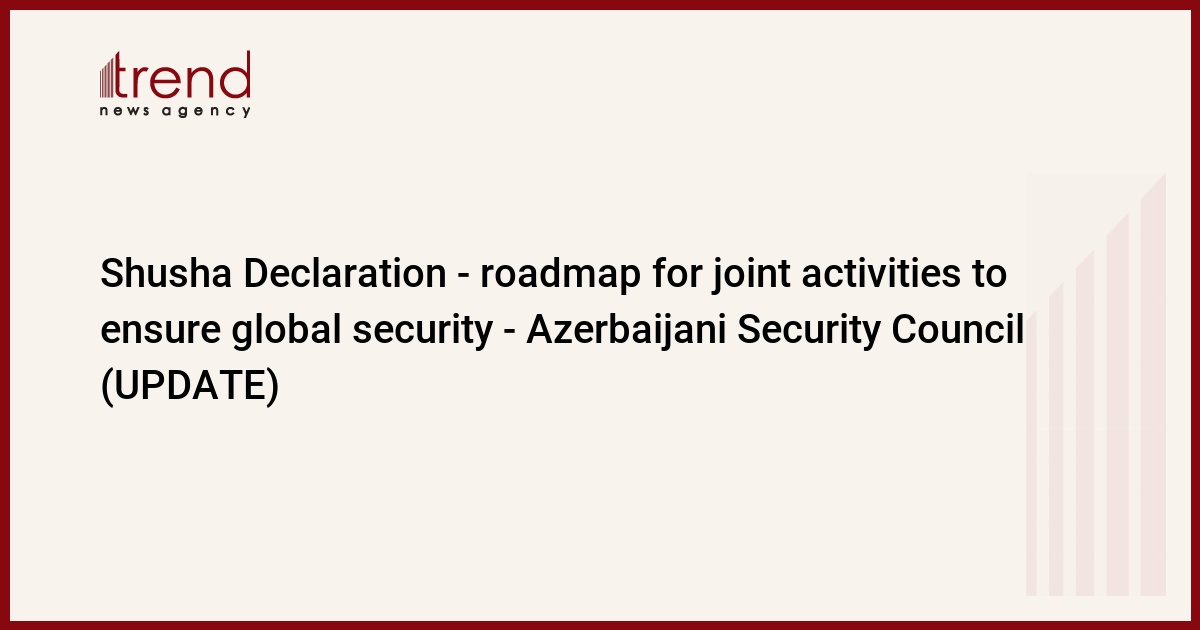 BAKU, Azerbaijan, June 14. Shusha Declaration is a roadmap for joint activities to ensure regional and global security and constantly requires new approaches, Secretary of the Azerbaijani Security Council Colonel-General Ramil Usubov told Azerbaijan newspaper, Trend reports.
