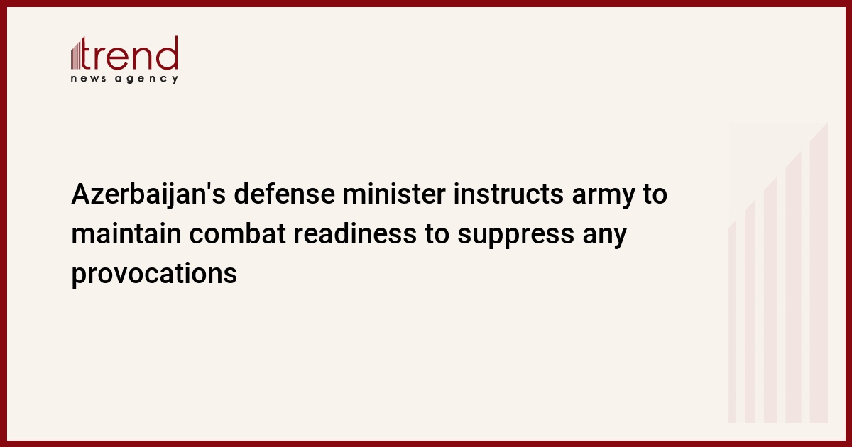 BAKU, Azerbaijan, September 10. Minister of Defense of Azerbaijan Zakir Hasanov has instructed the army to maintain combat readiness to immediately suppress any provocations, Trend reports via the ministry.
