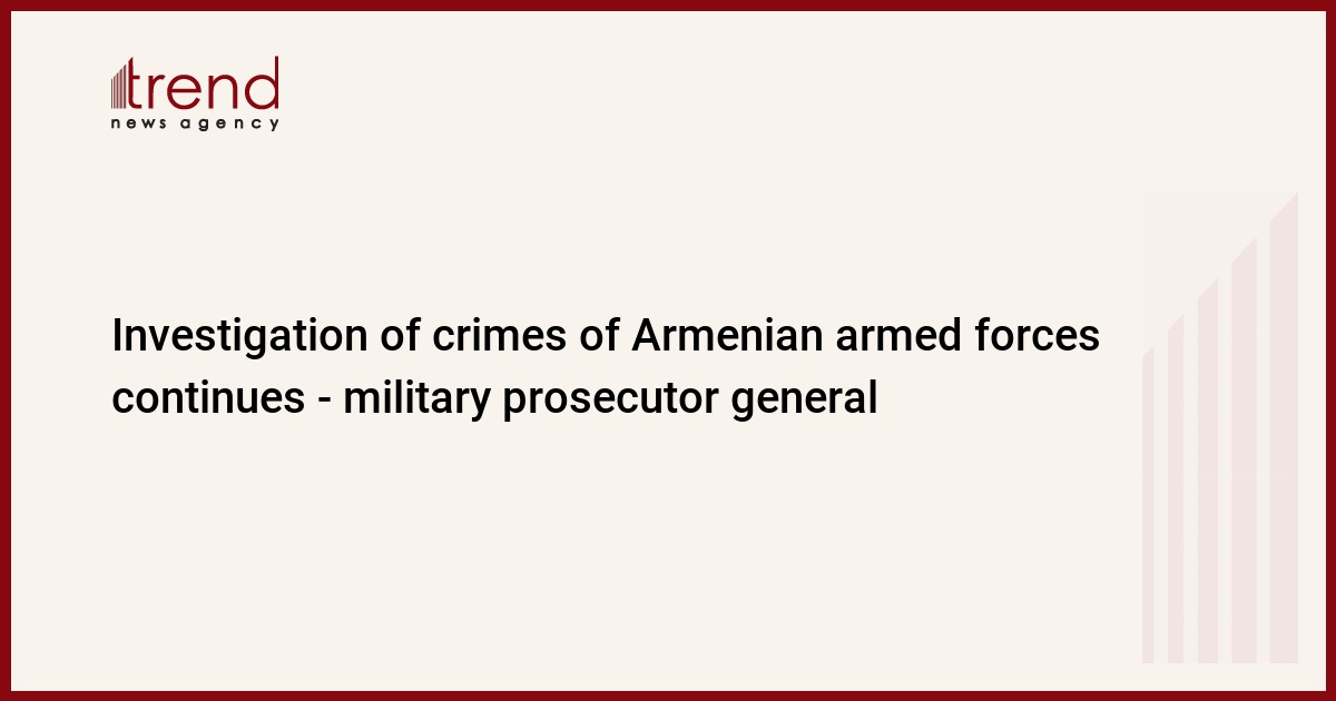 BAKU, Azerbaijan, September 30. The Military Prosecutor's Office of Azerbaijan continues investigative and operation measures on the criminal case under the relevant articles of the Criminal Code in connection with the facts of crimes against peace and humanity, war crimes, terror, deliberate murders and other crimes committed by Armenian Armed forces and illegal troops against Azerbaijani people, Trend reports.