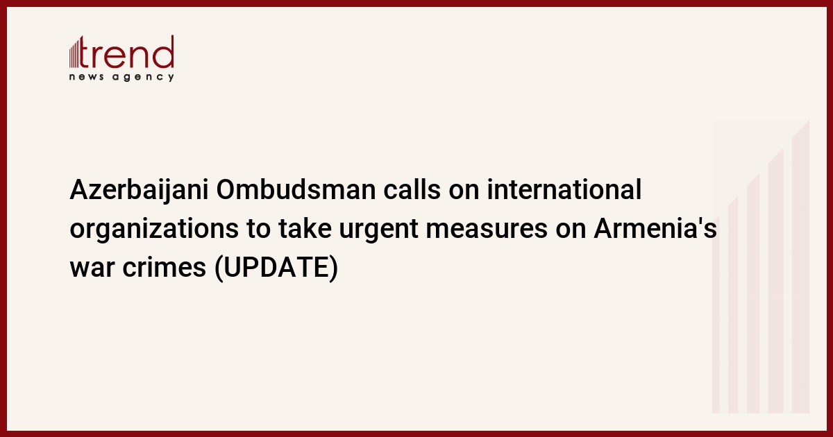 "Once again bringing these facts to the attention of the UN, the EU, European Council and their structures, and other competent international and regional organizations, Azerbaijan calls for urgent legal measures to be taken to account for those who have committed these crimes against peace and humanity,” Aliyeva stated.