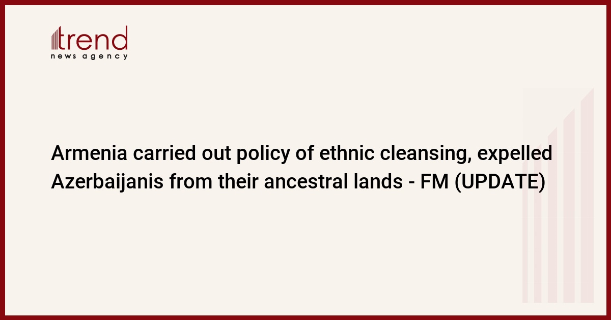 BAKU, Azerbaijan, November 5. Armenia carried out a policy of ethnic cleansing and expelled Azerbaijanis from their ancestral lands, Minister of Foreign Affairs of Azerbaijan Jeyhun Bayramov said on November 5 at an event dedicated to November 8 - Victory Day, Trend reports.