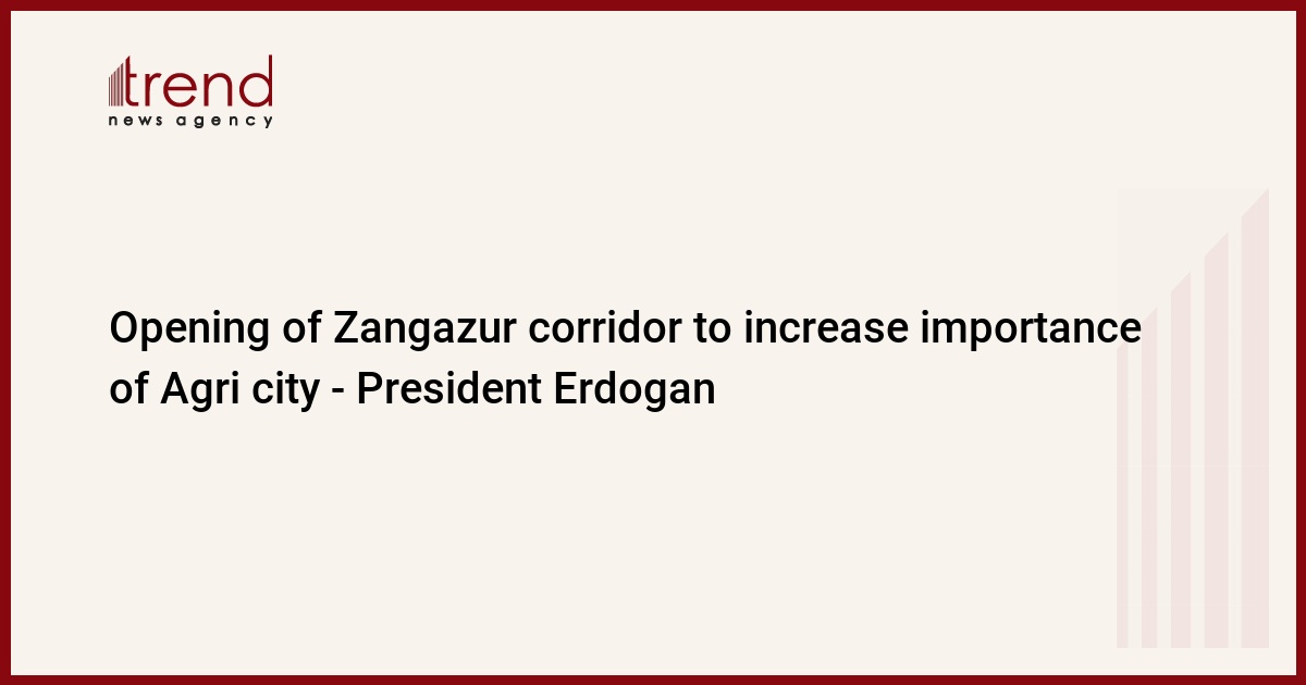 BAKU, Azerbaijan, December 1. The opening of the Zangazur corridor will increase the importance of Agri city, Turkish President Recep Tayyip Erdogan said at the opening ceremony of the Agri-Hamur-Tutak-Patnos road on December 1, Trend reports.