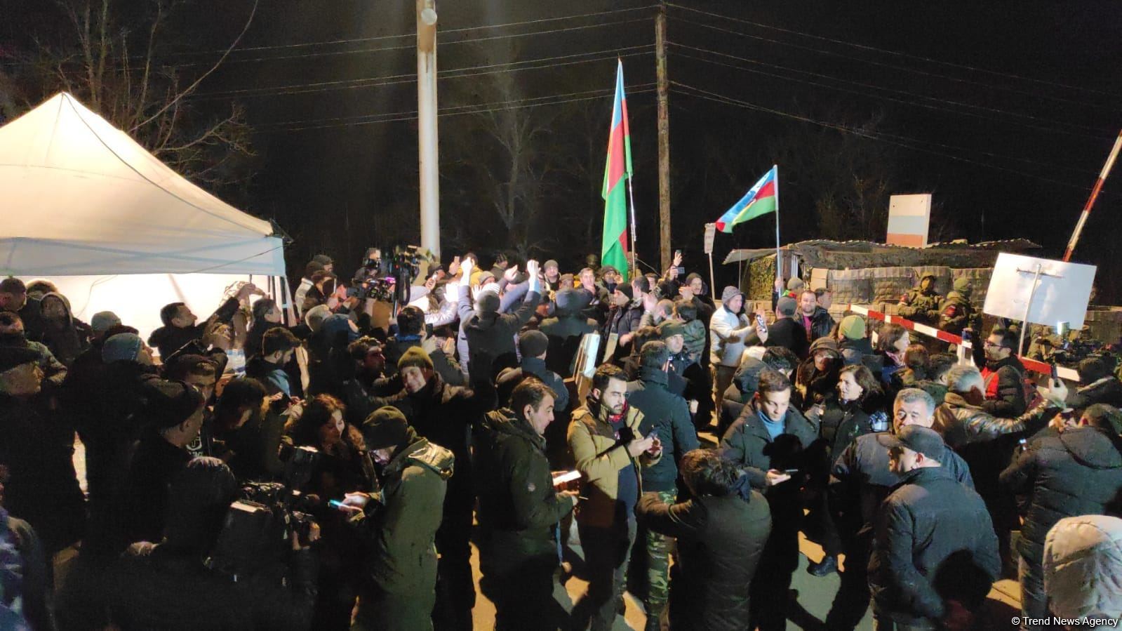 BAKU, Azerbaijan, December 14. Representatives of Azerbaijan's non-governmental organizations (NGOs) have been protesting near Shusha, close to Russian peacekeepers' temporary deployment area, for the third day, and sang once again the National Anthem of Azerbaijan, Trend reports from the scene on December 14.