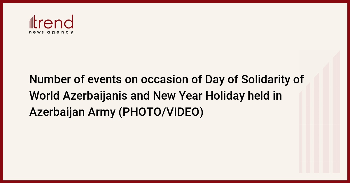 BAKU, Azerbaijan, December 31. According to the plan approved by the Minister of Defense, Colonel General Zakir Hasanov, a number of events on the occasion of the Day of Solidarity of World Azerbaijanis and the New Year Holiday were held on December 31 in all types of troops, the Combined Arms Army, Army Corps, formations and special educational institutions of the Azerbaijan Army, Trend reports referring to Azerbaijan's Ministry of Defense.