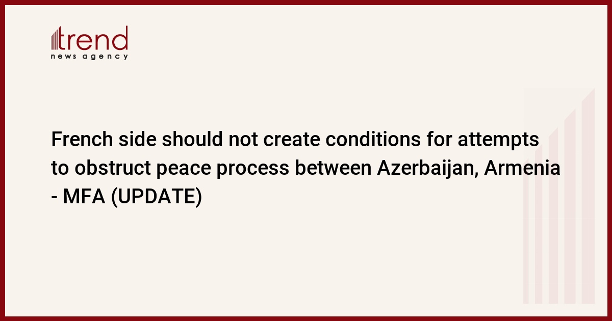 In return for Azerbaijan’s efforts to ensure peace, stability and development in the region, to normalize relations with Armenia on the basis of respect for international law principles such as territorial integrity and sovereignty, the French side should not create conditions for attempts to obstruct the process by expressing such a unilateral position," the spokesperson said in a statement.