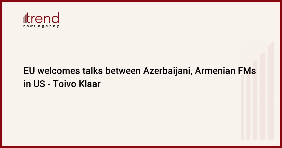 BAKU, Azerbaijan, May 6. The EU welcomes the talks of the Foreign Ministers of Azerbaijan and Armenia in the US, Toivo Klaar, EU Special Representative for the South Caucasus and the crisis in Georgia, wrote on Twitter, Trend reports.
