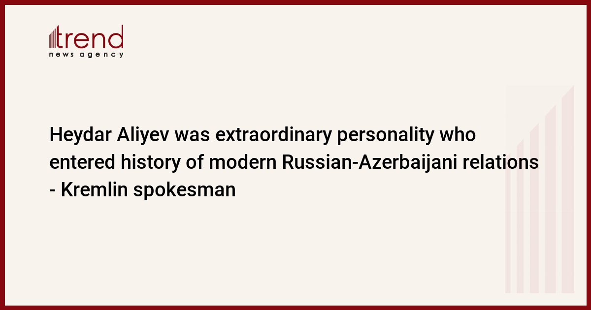 BAKU, Azerbaijan, May 10. Heydar Aliyev was an extraordinary personality, who entered the history of the USSR and modern Russian-Azerbaijani relations, Kremlin Spokesman Dmitry Peskov said at a briefing, Trend reports via Russian media.