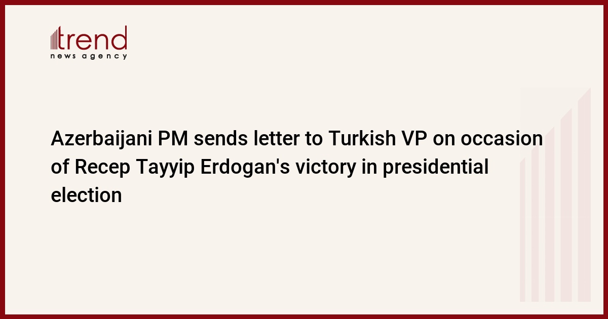 BAKU, Azerbaijan, May 29. Azerbaijani Prime Minister Ali Asadov has sent a letter to Turkish Vice President Fuat Oktay on the occasion of Recep Tayyip Erdogan's victory in the presidential elections, the Azerbaijani Cabinet of Ministers told Trend.