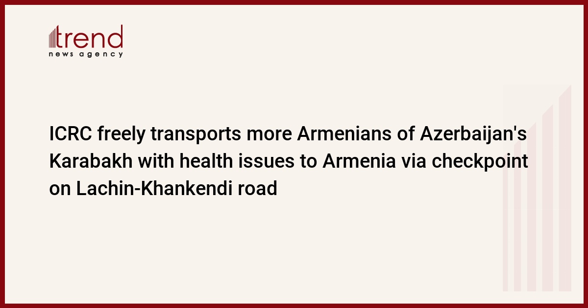 BAKU, Azerbaijan, June 9. Representatives of the International Committee of the Red Cross (ICRC) delivered 15 Armenian residents of Azerbaijan's Karabakh economic region with health problems (transporting them via a checkpoint on the Lachin-Khankendi road) to hospitals in Armenia, Trend reports.