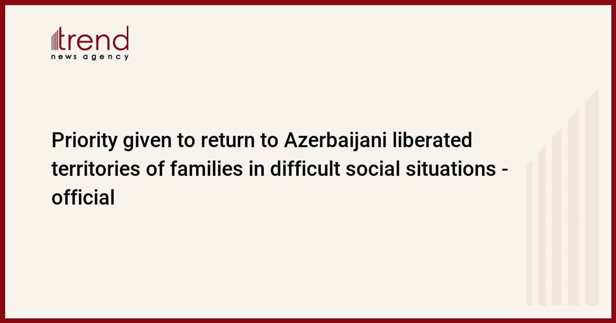 BAKU, Azerbaijan, June 11. Priority is given to the return to the liberated territories of Azerbaijan [from Armenian occupation after Second Karabakh War] of families with a difficult social situation, Special Representative of the President of the Republic of Azerbaijan in the liberated territories of the Karabakh economic region (except Shusha district) Emin Huseynov said in an interview, Trend reports.