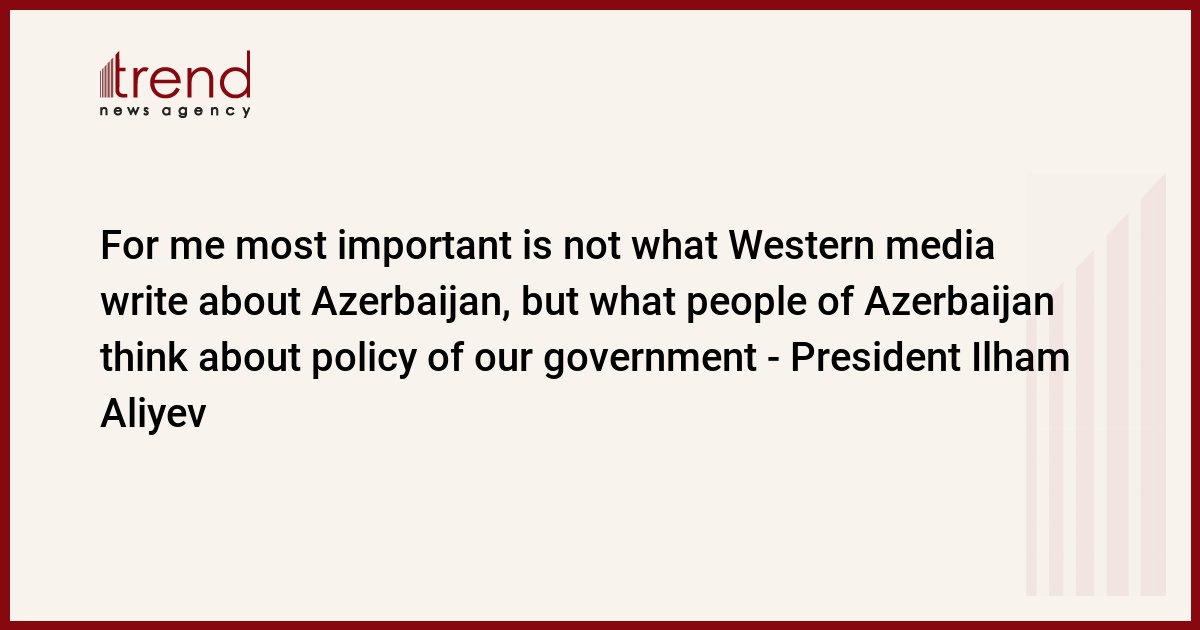 BAKU, Azerbaijan, July 24. “For me the most important is not what Western media write about Azerbaijan, but what people of Azerbaijan think about the policy of our government,” said President of Azerbaijan Ilham Aliyev as he was interviewed by the China Media Group media corporation.