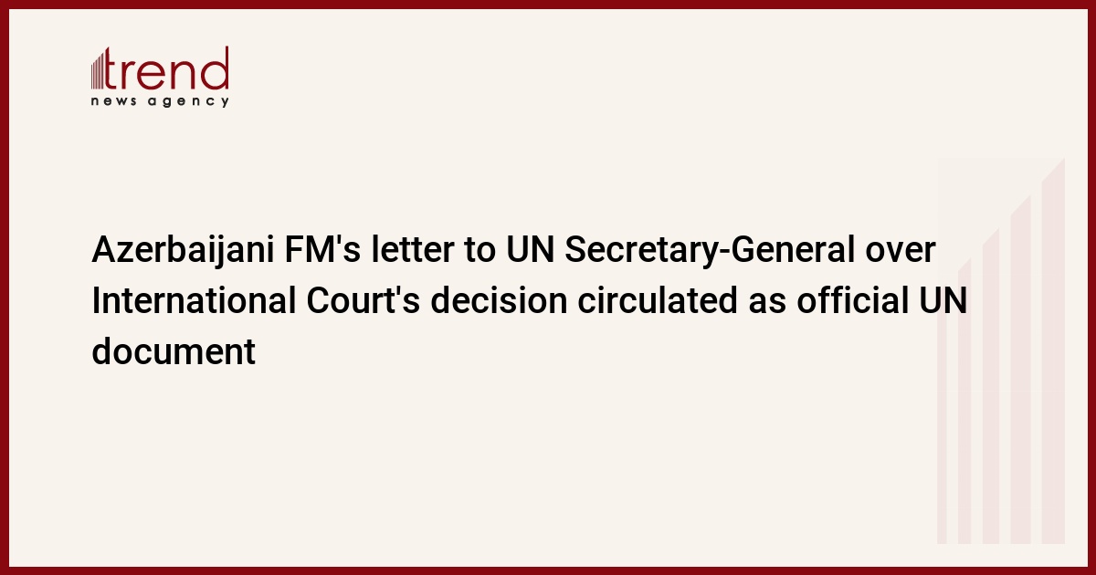 BAKU, Azerbaijan, August 3. Azerbaijani Foreign Minister Jeyhun Bayramov's letter, dated July 21, 2023, addressed to the UN Secretary-General Antonio Guterres, regarding the decision of the International Court on July 6, rejecting Armenia's request, has been circulated as an official document of the UN Security Council and the General Assembly, Trend reports.