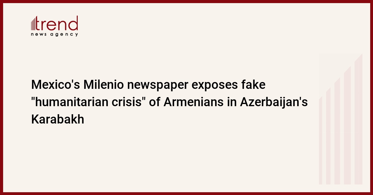 BAKU, Azerbaijan, September 15. Milenio, a major national newspaper in Mexico, has published an article exposing Armenian propaganda regarding the so-called "blockade" and "humanitarian crisis" in Azerbaijan's Karabakh region, Trend reports.