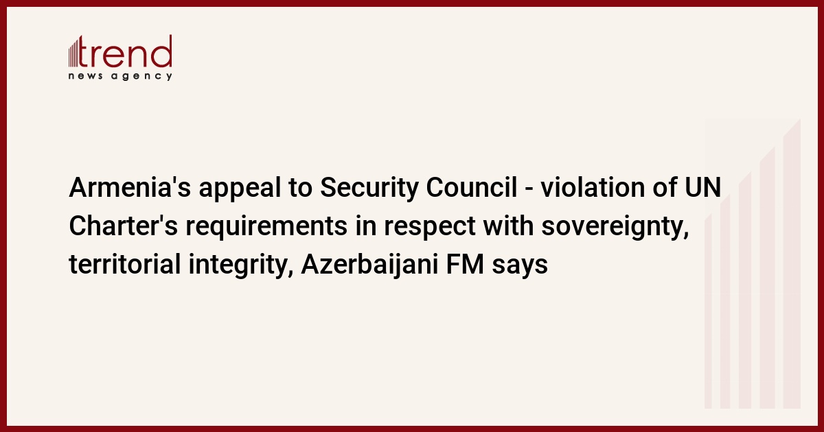BAKU, Azerbaijan, September 22. Armenia's appeal to the Security Council constitutes a violation of the UN Charter's requirements regarding the respect for the sovereignty and territorial integrity of states, Minister of Foreign Affairs of Azerbaijan Jeyhun Bayramov said at the UN Security Council meeting, Trend reports.