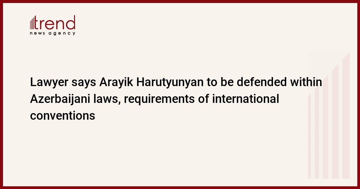 BAKU, Azerbaijan, October 4. The defense of Arayik Harutyunyan will be carried out in accordance with the law of Azerbaijan and the requirements of international conventions, the lawyer of the former "head" of the defunct Armenian separatist regime in Azerbaijan's Karabakh, Alov Safaraliyev, said, Trend reports.
