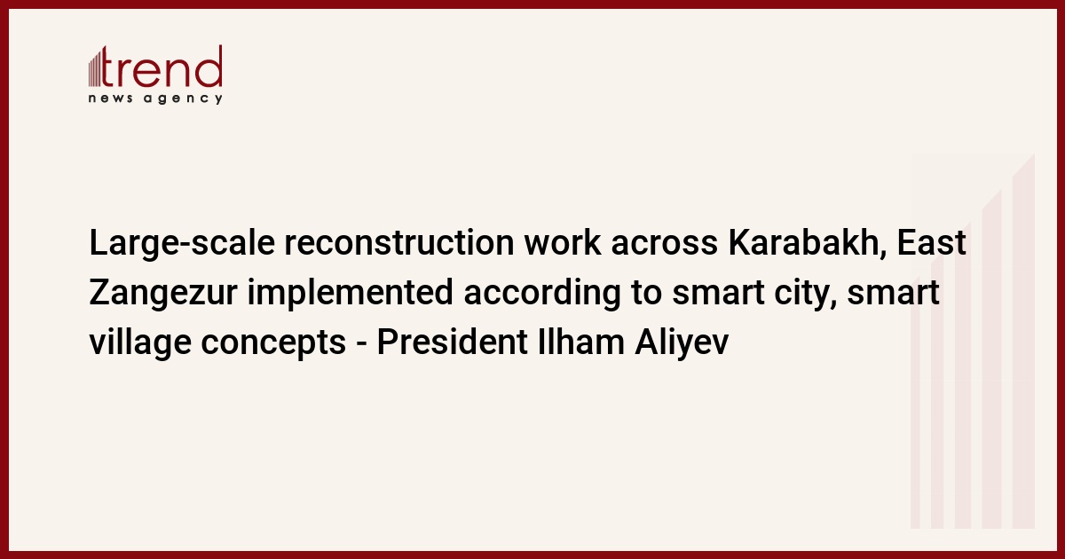 BAKU, Azerbaijan, October 10. The large-scale reconstruction and renovation work across Karabakh and East Zangezur – declared energy zones – are implemented according to smart city and smart village concepts, President of the Republic of Azerbaijan Ilham Aliyev said in his appeal to the participants of the 27th meeting of the Council of Ministers of the Economic Cooperation Organization (ECO) member states held in Shusha, Trend reports.