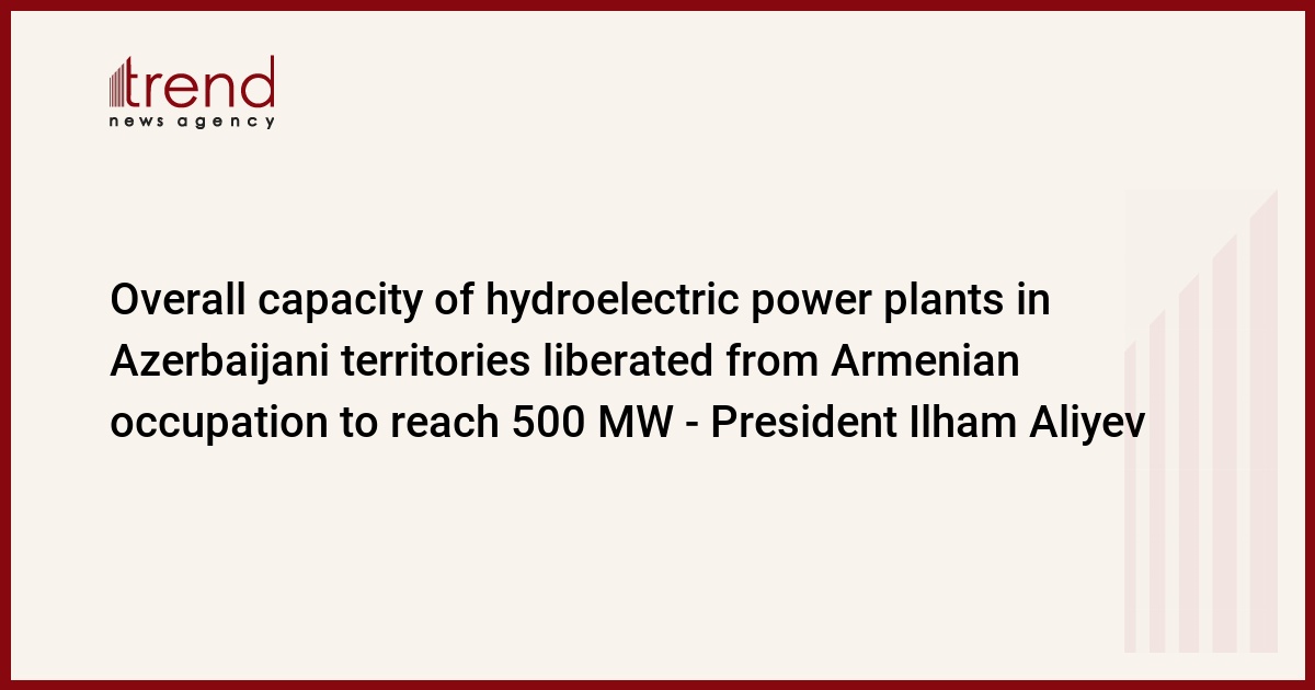 From 2021 to 2023, hydropower plants with the capacity of 170 megawatts have been built in the liberated Karabakh and East Zangezur. By the end of 2024, the plants are expected to generate 270 megawatts of electricity. Within couple of years, overall capacity of the hydropower plants in the territories liberated from the Armenian occupation are to reach 500 megawatts,” the Azerbaijani leader noted.