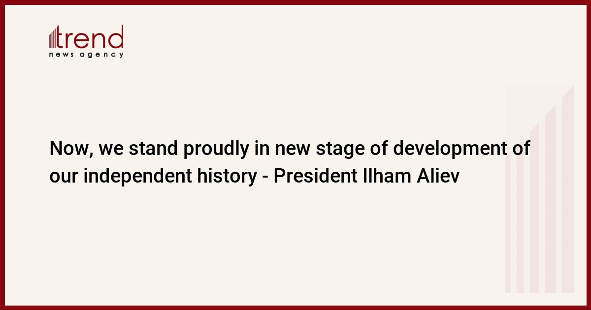 BAKU, Azerbaijan, December 13. Now, we stand proudly in a new stage of the development of our independent history, said Azerbaijani President Ilham Aliyev, addressing the participants of the VI Forum of Solidarity of Azerbaijani Volunteers, Trend reports.
