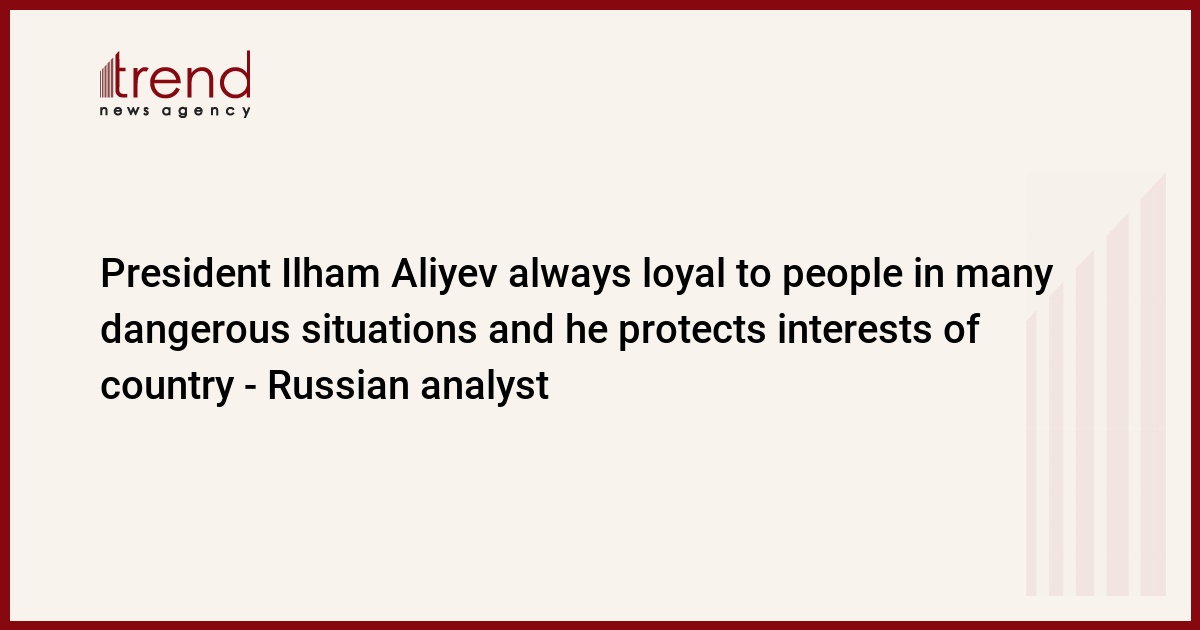 BAKU, Azerbaijan, February 8. President of Azerbaijan Republic Ilham Aliyev has been loyal to the people in many dangerous situations and he is protecting the country's interests, Director General of the Caspian Institute for Strategic Studies (Russia), Igor Korotchenko wrote on his social media account, Trend reports.