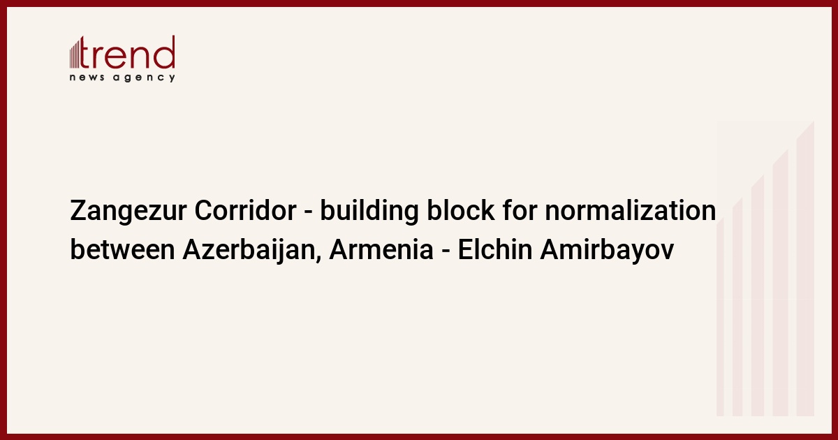 BAKU, Azerbaijan, March 2. The Zangezur Corridor is an essential building block towards the normalization of relations between Armenia and Azerbaijan, said Elchin Amirbayov, Representative of the President of the Republic of Azerbaijan on special assignments, Trend reports.