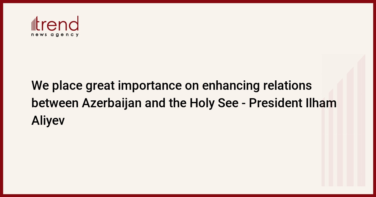 BAKU, Azerbaijan, March 13. We place great importance on enhancing relations between Azerbaijan and the Holy See, said President of the Republic of Azerbaijan Ilham Aliyev in the congratulatory letter sent to Pope Francis on the occasion of his Election Anniversary, Trend reports.