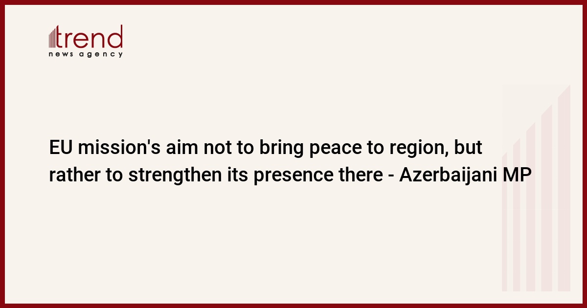 The mission's goal is not to bring peace to the region, but to strengthen its presence there. With this mission, the EU is trying to do this through Armenia. Armenia has never had an independent policy. If the European Union is so interested in establishing peace and stability in the region, why did it send no missions to the region for 30 years, when Azerbaijani lands were under Armenian occupation, and did not exert any pressure on Armenia? Now the European Union is sending a mission to Armenia. The root of such zeal is the desire to secure its interests in the region," the MP noted.