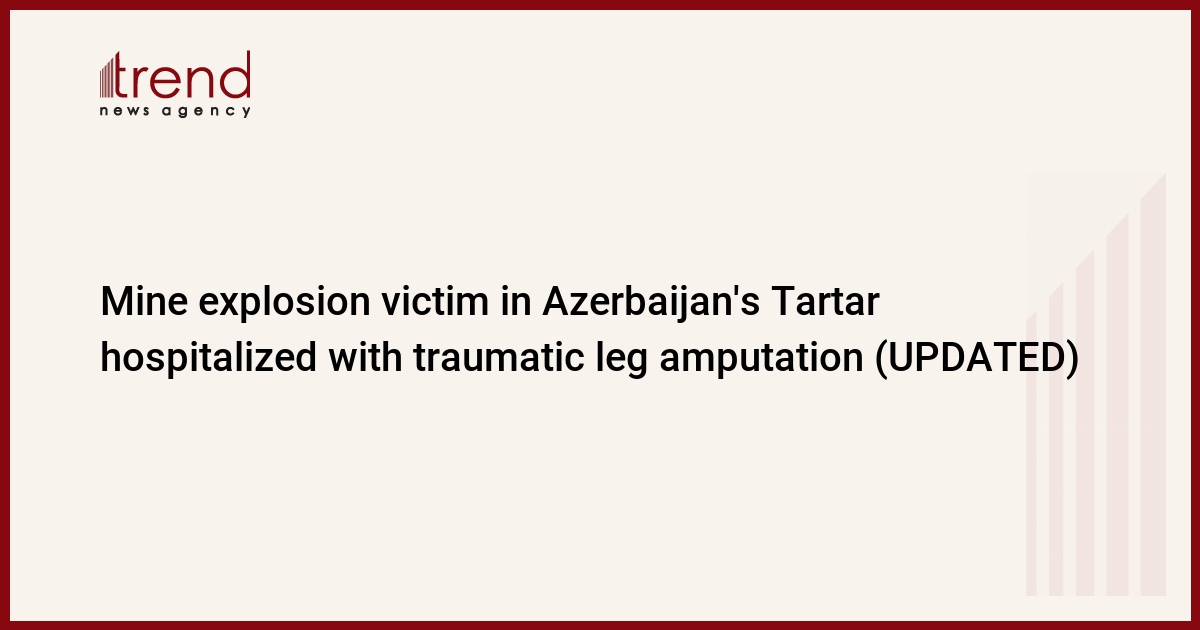 BAKU, Azerbaijan, April 2. One of the three victims of the mine explosion in Tartar was hospitalized with traumatic amputation of legs, a surgeon at the Tartar Central District Hospital, Mubariz Mahmudov told Trend's Karabakh bureau.