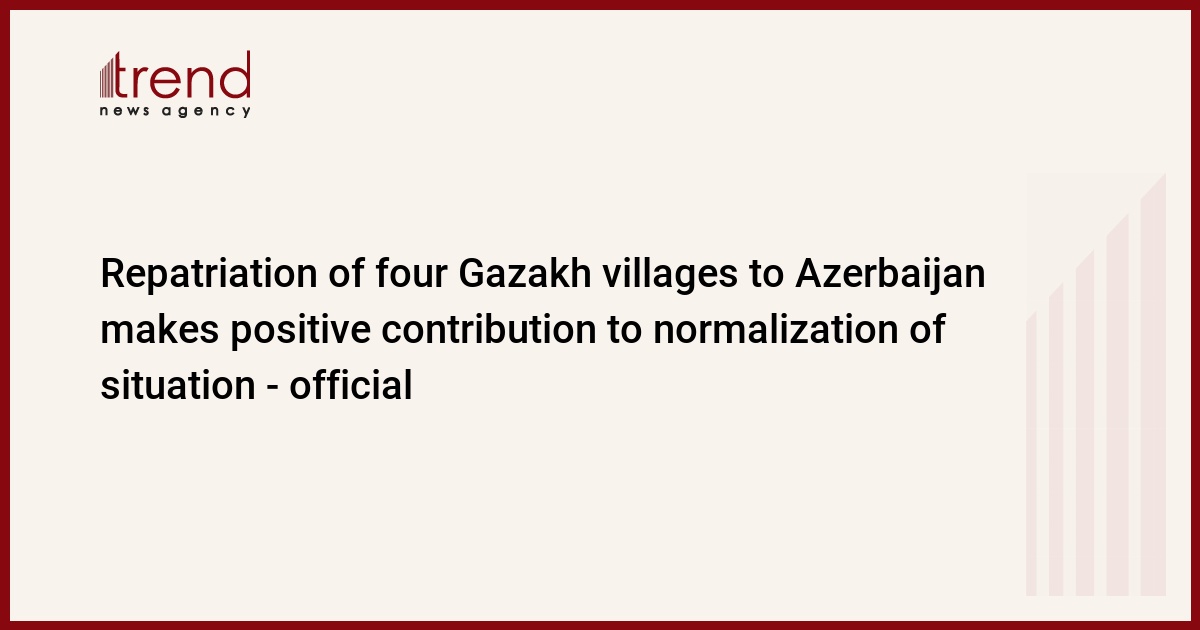BAKU, Azerbaijan, May 30. The return of Gazakh villages, long occupied by Armenia, to Azerbaijan makes a positive contribution to the process of normalizing the situation, Azerbaijani Foreign Minister Jeyhun Bayramov said, Trend reports.