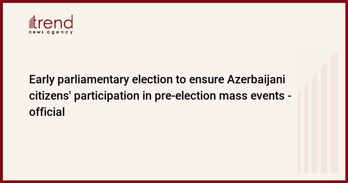 BAKU, Azerbaijan, June 27. Holding an early parliamentary election in Azerbaijan will ensure the participation of citizens in pre-election mass events, Head of the Azerbaijani Parliament Apparatus Farid Hajiyev said during the meeting of the Plenum of Azerbaijan's Constitutional Court in Baku today, Trend reports.