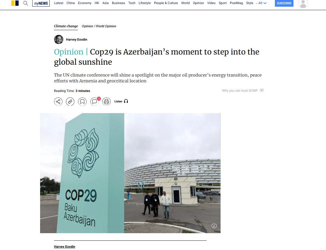 BAKU, Azerbaijan, November 4. Azerbaijan is positioned to become a middle power in a multipolar world as COP29 approaches, wrote Harvey Dzodin, senior fellow at the Center for China and Globalization and political commentator, in his article for the South China Morning Post, Trend reports.