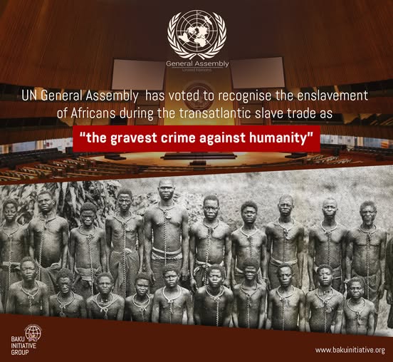 “The Baku Initiative Group fully supports the resolution adopted by the UN General Assembly, which declares the transatlantic slave trade the ‘gravest crime against humanity.’
