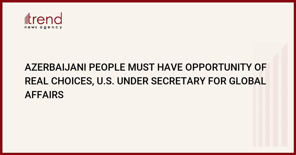 “U.S. government desires that this decree will be implemented in all levels of the government, as well as in the regions of the country”, - she noted. The Under Secretary for Global Affairs also voiced hope that the U.S.-funded exit poll will help to prevent falsification during the forthcoming parliamentary elections in Azerbaijan.