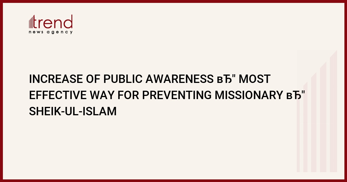 Increase of public awareness in Islam is the most effective way for preventing missionary, Sheik-ul-Islam Allahshukir Pashazada, the chairman of the Caucasus Clerical Board (CCB), stated to the 6th session of the Eurasian Islamic Council held in Istanbul, Trend reports in reference to Turkish daily Zaman.