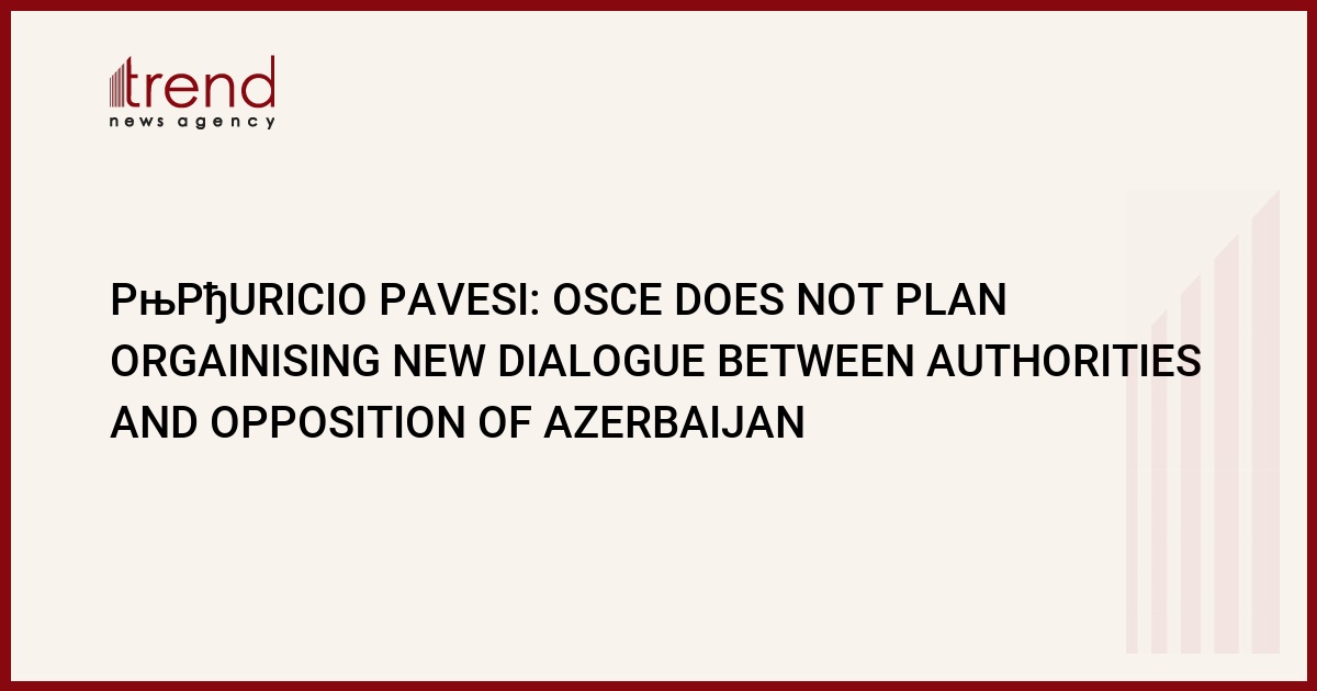 OSCE does not plan to organize a new dialogue between the authorities and the opposition of Azerbaijan, the head of the OSCE Baku office, the Ambassador Mauricio Pavesi said in a statement on 12 September 2005 after the seminar, dedicated to the discussion of issues, related to the ensuring the citizens’ right for free assemblies, Trend reports.
