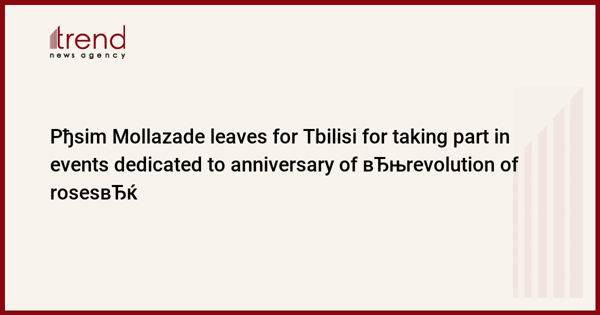 Chairman of the Party for Democratic Reforms Asim Mollazade leaves for Tbilisi and will stay there from 21 to 23 November for participation at the international forum dedicated to the anniversary of the “revolution of roses” and at the grand ceremony also dedicated to this event at the invitation of the Georgian President Michail Saakashvili, the Party told Trend.
