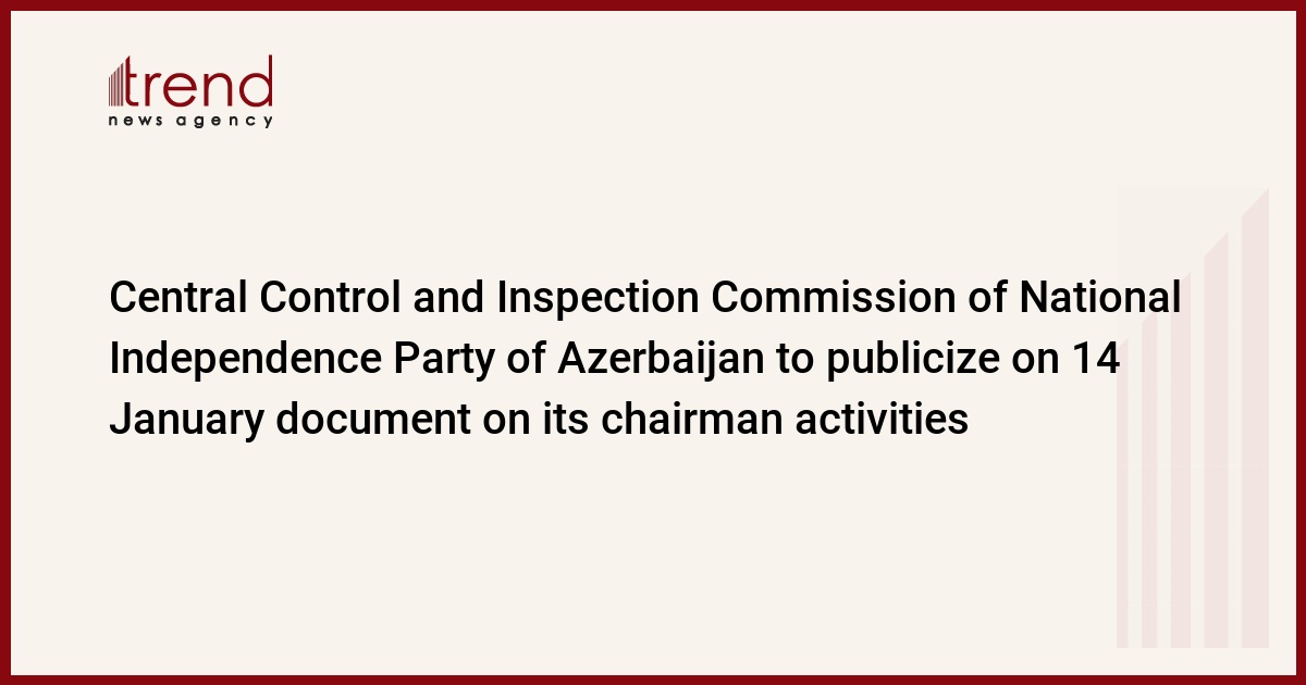 The Central Control and Inspection Commission (CCIC) of the National Independence Party of Azerbaijan (NIPA) to publicize on 14 January a document on the results of the checking of the organizations chairman, Ali Aliyevs activities, the CCIC head Alisher Hadjiyev told Trend.