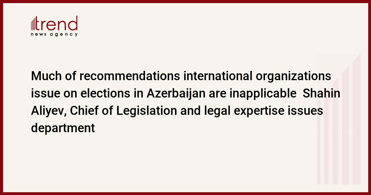Much of the recommendations international organizations issue for elections in Azerbaijan are inapplicable as they are too common, Trend reports quoting Shahin Aliyev, Chief of Legislation and legal expertise issues department, which was speaking April 28 at the round table on the results of the 6 November 2005 elections and perspectives of cooperation in the field of electoral legislation and practice.