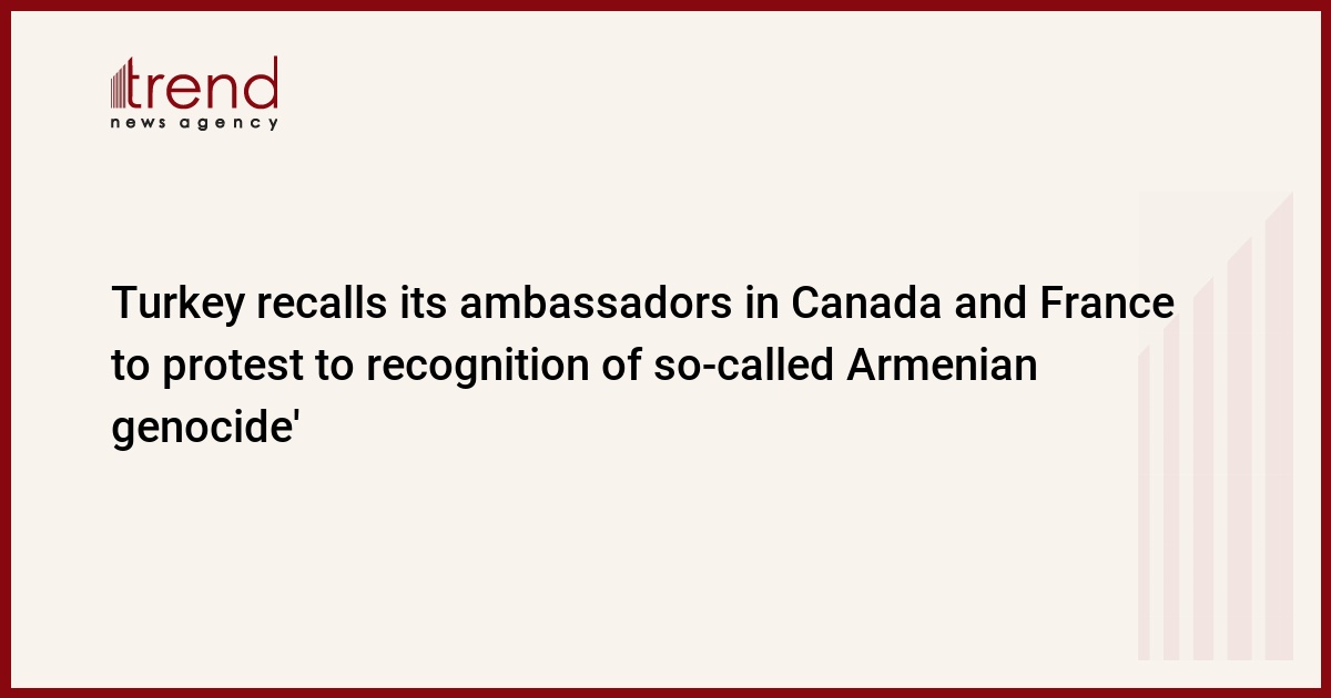 Turkey has recalled its Ambassadors from France and Canada as a sign of protest to recognition of the so-called Armenian genocide in Osman Empire, Trend reports citing the Turkish media.