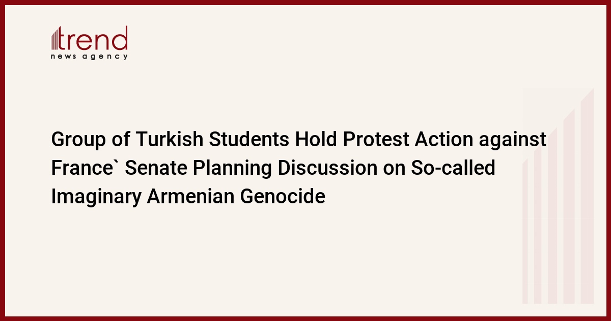 A group of Turkish Students studying at Baku State University on May 15 hold a protest action against the planning discussion of the bill on criminal and administrative prosecution of those who deny the so-called imaginary Armenian genocide in Ottoman Empire fixed on April 18 at France`s Senate, IAA Trend reports.