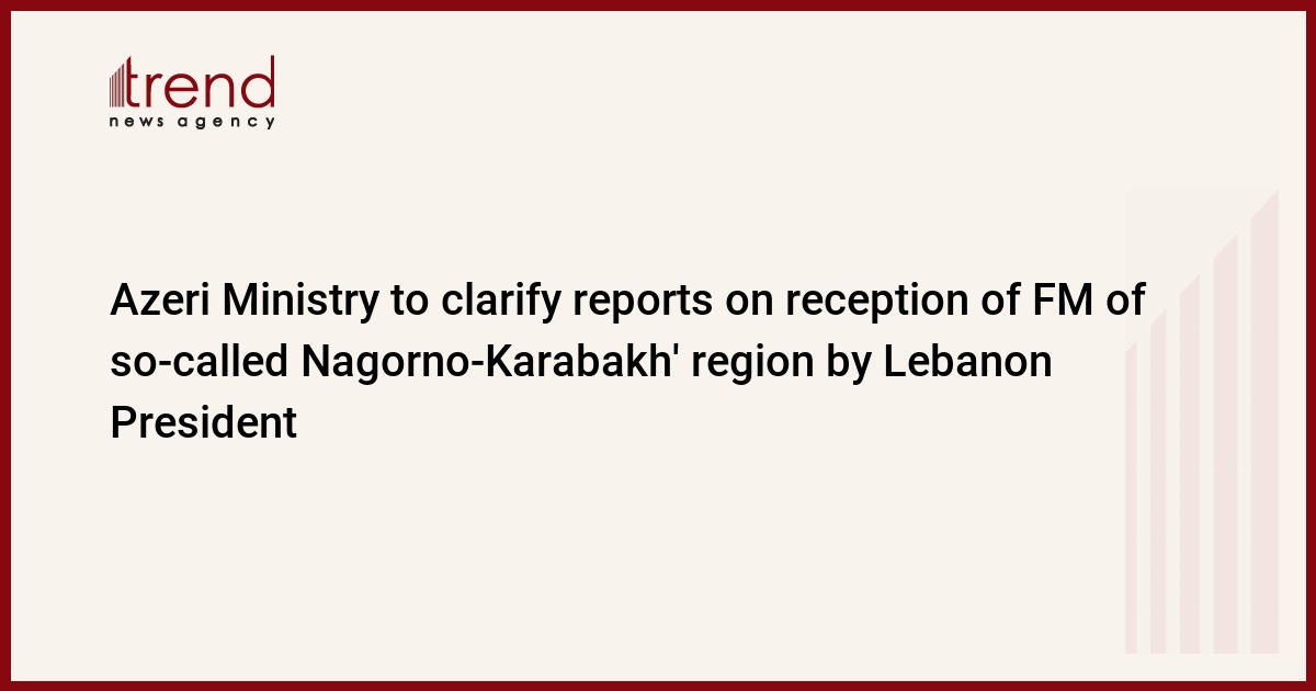 The Azerbaijani Foreign Ministry is clarifying the information on reception of the Foreign Minister of the so-called Nagorno-Karabakh region by the Lebanon President, Tahir Tagizade, the head of the Press and Information Department of the Azerbaijani Foreign Ministry, told Trend. He was commenting on the news article placed the websote of the President of Lebanon.