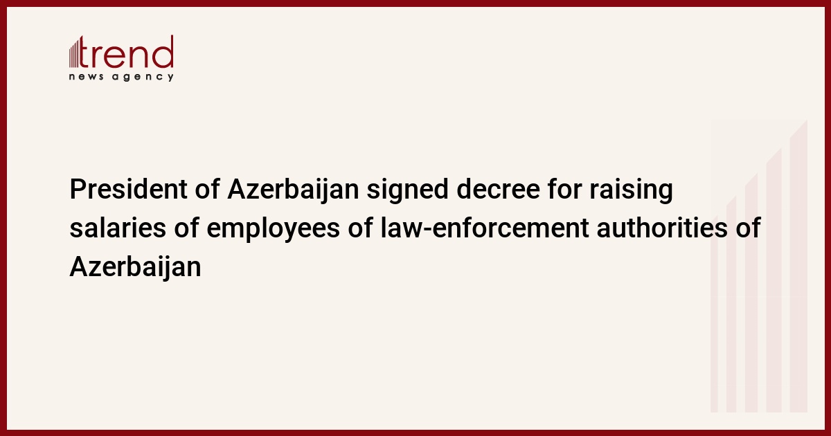 President of Azerbaijan Ilham Aliyev signed a decree June 30 for raising the salaries of employees of law-enforcement authorities of Azerbaijan that possess special knowledge, as well as that of civil employees of these authorities, Trend reports.