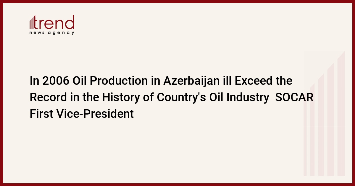 Khoshbakht Yusifzade, the First Vice-President of the State Oil Company of Azerbaijan (SOCAR) on geology, geophysics and field development said in an exclusive interview with Trend that in 2006 the oil production in Azerbaijan will exceed 30 million tons, which will beat the record in the history of Country's oil industry.