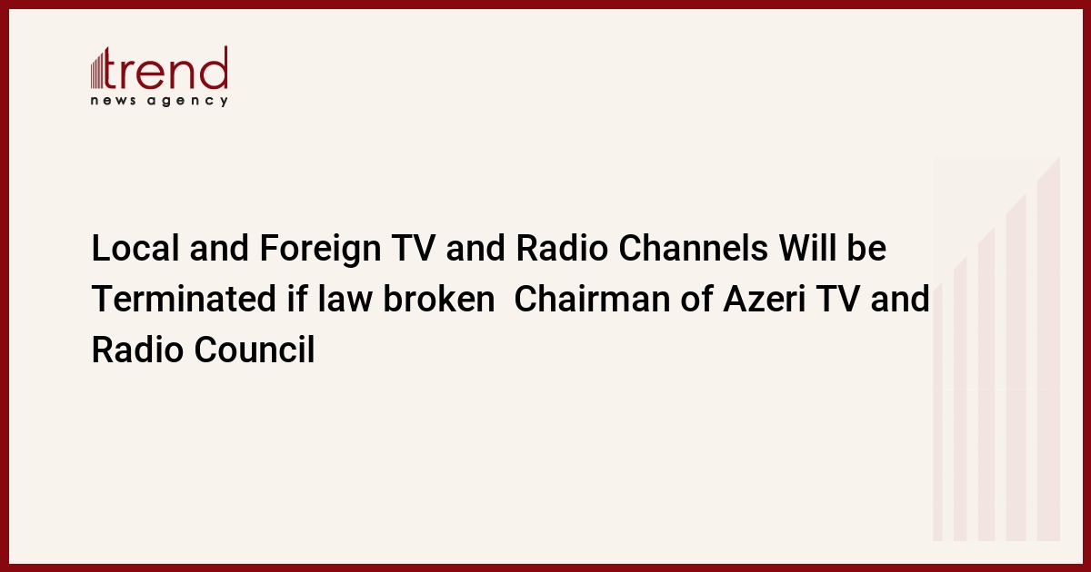 A decision has been made that should any local or foreign TV and radio channel not comply with the Azerbaijani laws they will have their broadcasting or transmission of foreign programs terminated immediately, the Chairman of the Azerbaijan National TV and Radio Council, Nushiravan Maharramli stated at an exclusive interview with Trend.