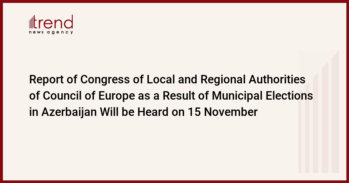 The report as a result of the municipal elections in Azerbaijan will be heard on 15 November in Moscow at the fall session of the Congress of Local and Regional Authorities of the Council of Europe, the Vice President of the Congress Ludmila Sfirloaga informed Trend.