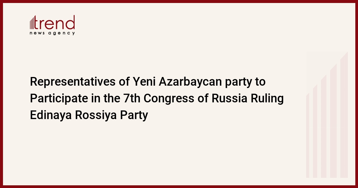 Representatives of Azerbaijan ruling party Yeni Azarbaycan (New Azerbaijan) are expected to participate in 7th Congress of Russia ruling party Edinaya Rossiya (United Russia) at the end of November, this year, Azerbaijani MP, Ali Ahmadov, Deputy Chairman of Yeni Azarbaycan Party and Executive Secretary of the Party, told journalists, Trend reports.