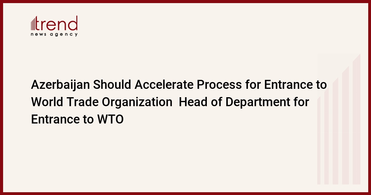 Azerbaijan should accelerate its process for entrance into the World Trade Organization (WTO), Arif Huseyn, Head of the Department for Entrance to WTO in the Secretariat of the Organization, who is in Azerbaijan on a two-day visit, stated, Trend reports.