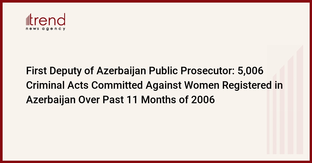 5,006 criminal acts committed against women, has been registered in January-November 2006, an increase as compared to the last year corresponding figure of 4823. Trend reports the announcement has come from Rustam Usubov, the First Deputy of Public Prosecutor, addressing parliamentary hearings on the prevention of violence against women.