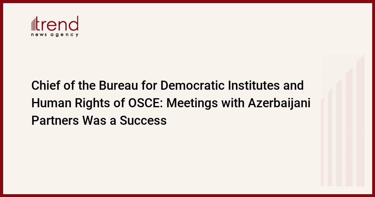 Christian Strohal, the Chief of the Bureau for Democratic Institutes and Human Rights of OSCE, informed journalists on the results of his two-day visit to Azerbaijan by saying that his meetings with Azerbaijan partners have passed successfully. Answering the journalists questions after the meeting with Mazahir Panahov, the Chairman of the Central Election Committee of Azerbaijan, Mr. Strohal said that his visit was intended for meeting with his friends and partners and the objective was to discuss possibilities on strengthening the cooperation. That means that based upon our previous recommendation we want to develop our cooperation in the next year. We have discussed the past experience and how it could be developed in the future, said the OSCE representative.